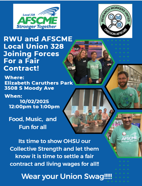 Local 328 and Research Workers United are joining forces and working together with a shared rally at Elizabeth Caruthers park.